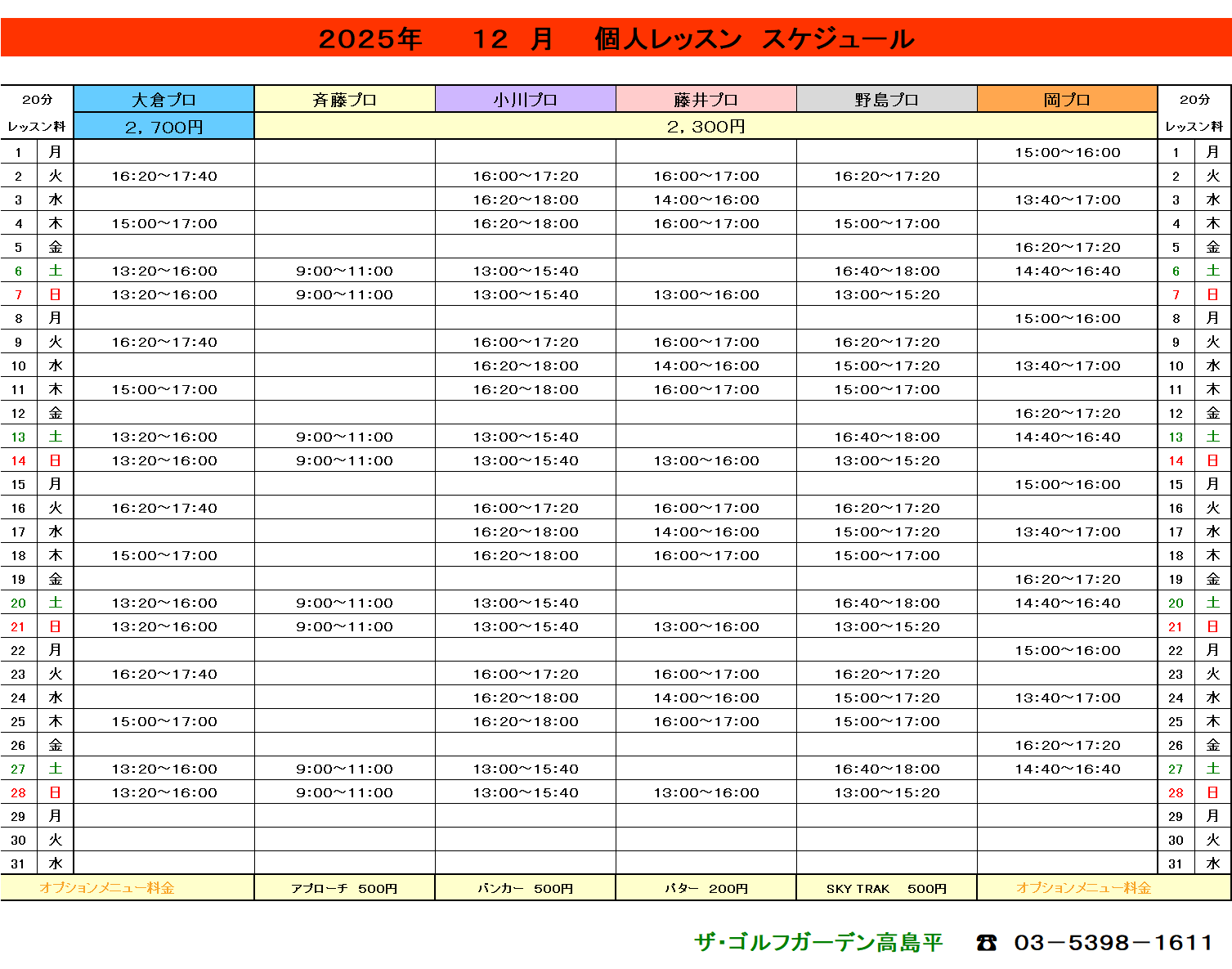 ザ・ゴルフガーデン高島平でのティーチング以外にも、ジュニアレッスンやプライベートレッスン、ラウンドレッスン等幅広く活動している。 -