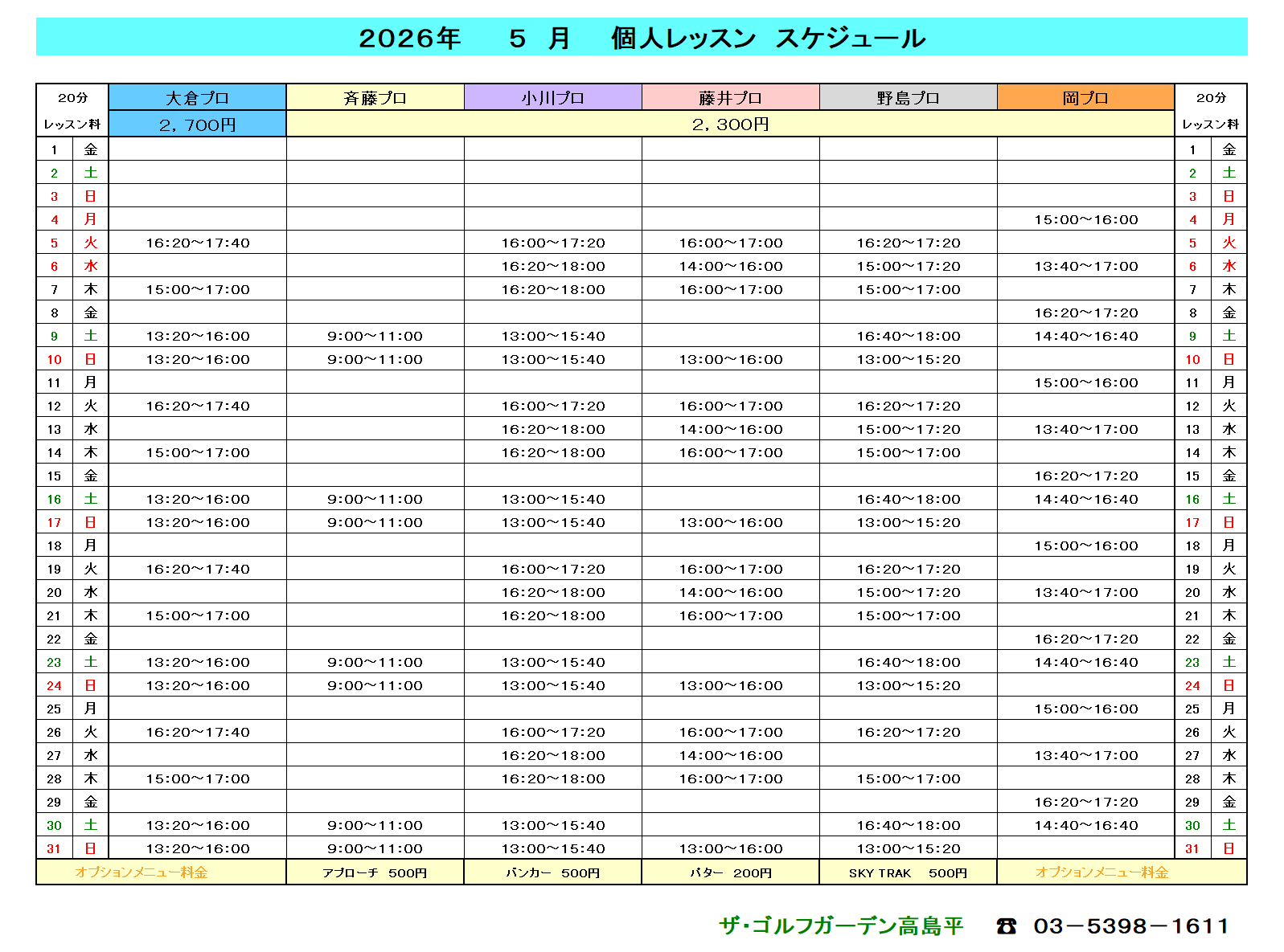 ザ・ゴルフガーデン高島平でのティーチング以外にも、ジュニアレッスンやプライベートレッスン、ラウンドレッスン等幅広く活動している。 -