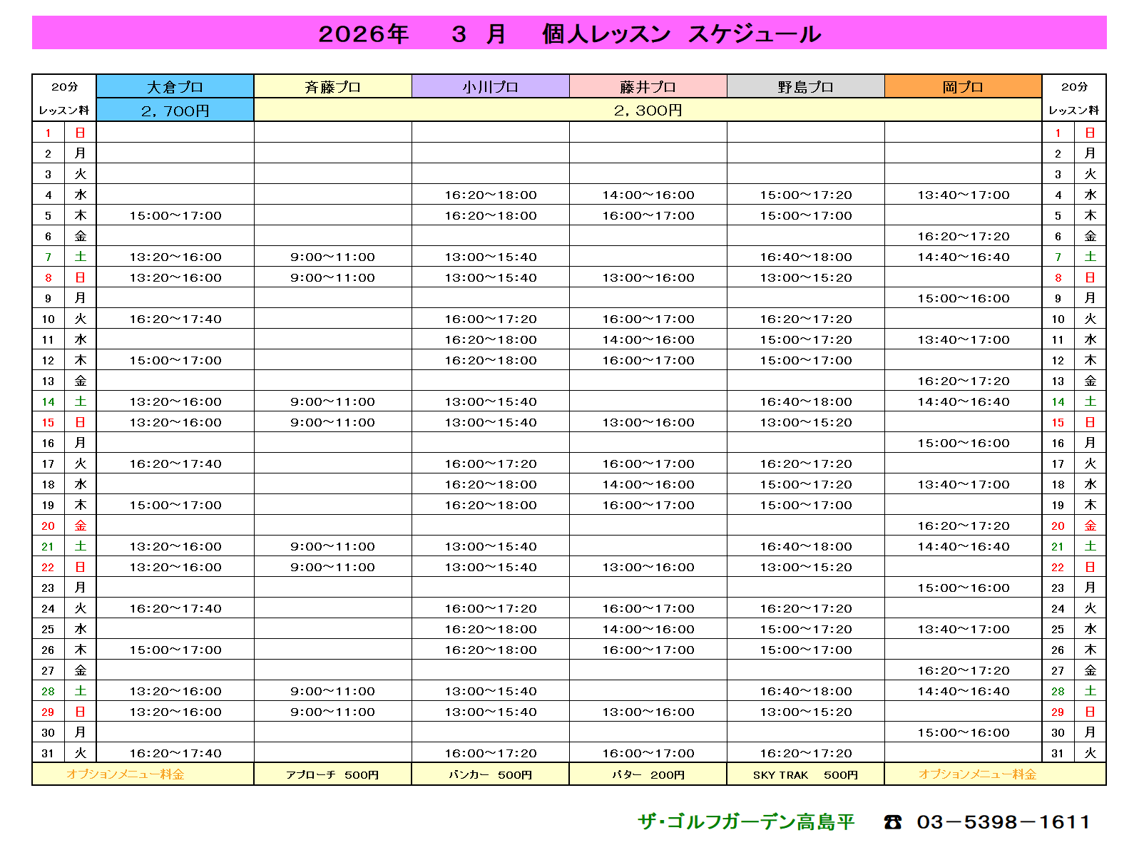 ザ・ゴルフガーデン高島平でのティーチング以外にも、ジュニアレッスンやプライベートレッスン、ラウンドレッスン等幅広く活動している。 -