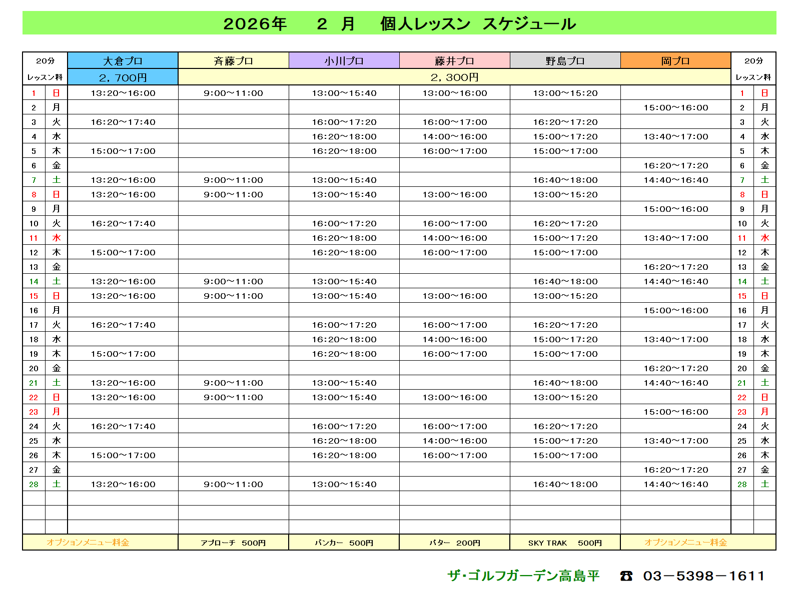 ザ・ゴルフガーデン高島平でのティーチング以外にも、ジュニアレッスンやプライベートレッスン、ラウンドレッスン等幅広く活動している。 -
