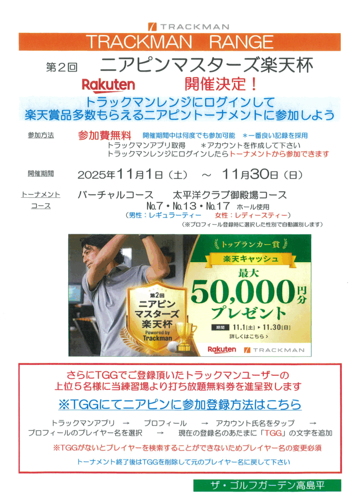 第2回ニアピンマスターズ楽天杯開催(11/1-11/30)のお知らせ!